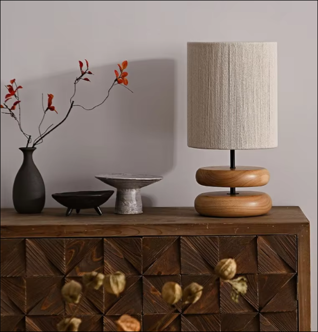 Thường làm từ gốm thô hoặc đá mộc, kết hợp chụp đèn vải thô, kiểu dáng đơn giản, tinh tế, không cầu kỳ. Phù hợp phòng ngủ, phòng làm việc, tạo ánh sáng nhẹ nhàng.