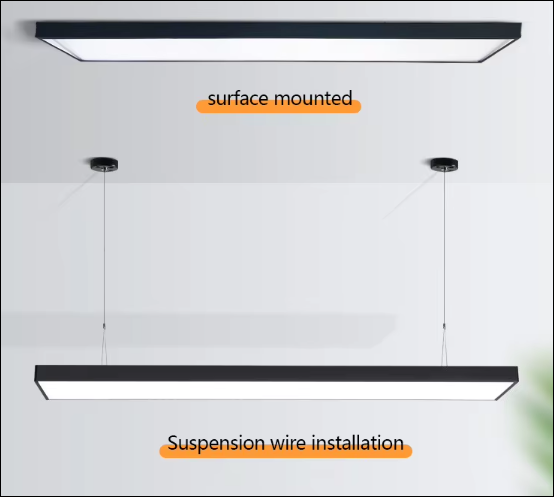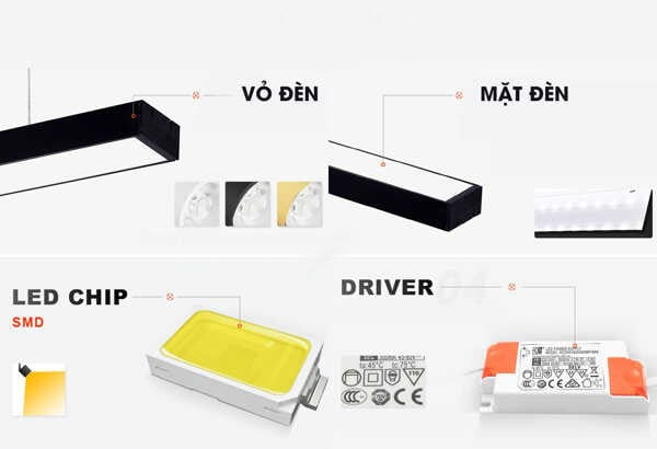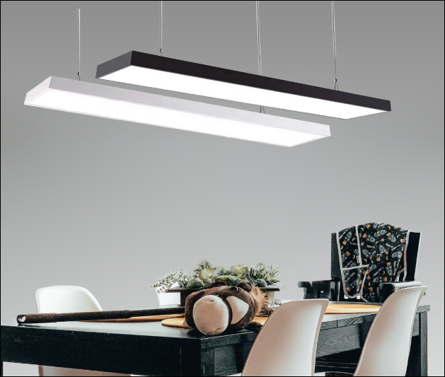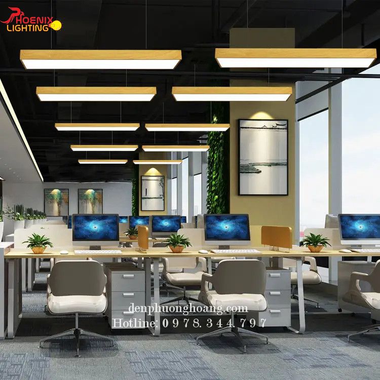 Đèn thả dài (linear): Được thiết kế theo hình chữ nhật dài 1m2, mang lại cảm giác gọn gàng, thanh lịch và hiện đại. Loại đèn này phù hợp với những không gian văn phòng tối giản, yêu cầu ánh sáng đều và tiết kiệm năng lượng như bàn làm việc nhóm, không gian coworking hoặc phòng họp.