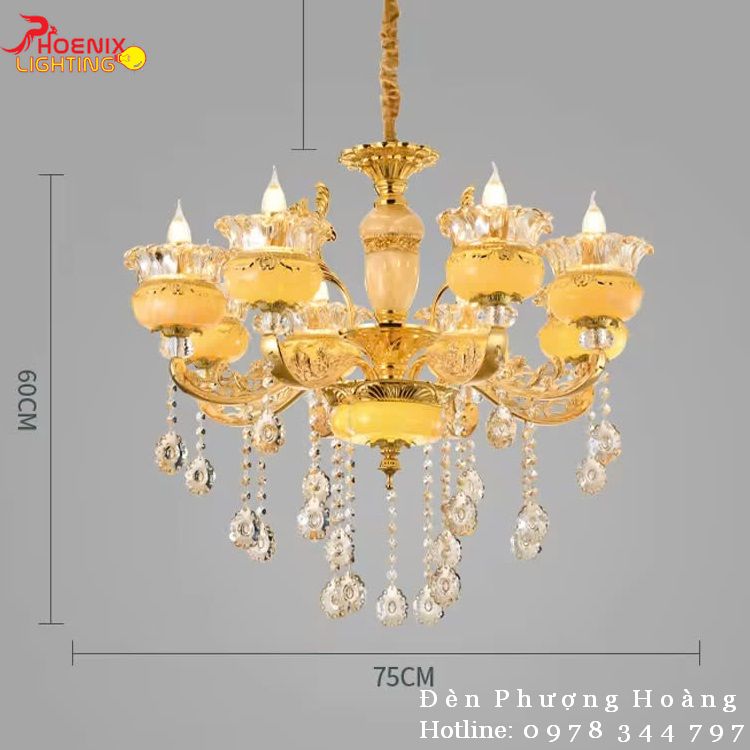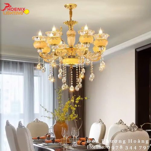Đèn Chùm Cá Chép Hóa Rồng Trang Trí Phòng Khách Sang Trọng PH8017 – 8 Bông